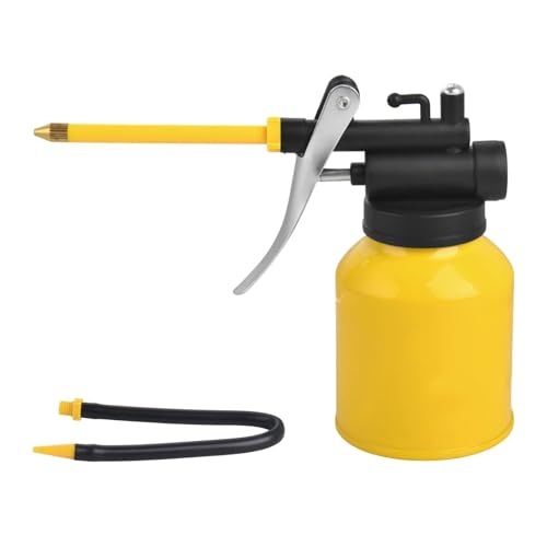 Pistol Hand Pump Oiler Can with Straight & Flexible Spout 10oz Oil can pump(Yellow)