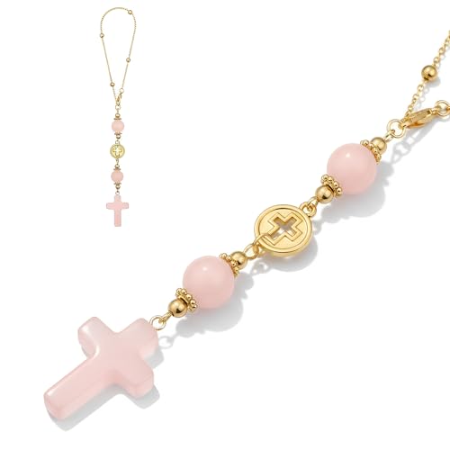 ITUBLE Car Rear View Mirror Hanging Accessories Car Rearview Charm Decorative Ornaments Decorations Interior For Women Men, Moon Star Energy Healing Crystal Accessories Ornament (Rose Quartz+Amethyst)