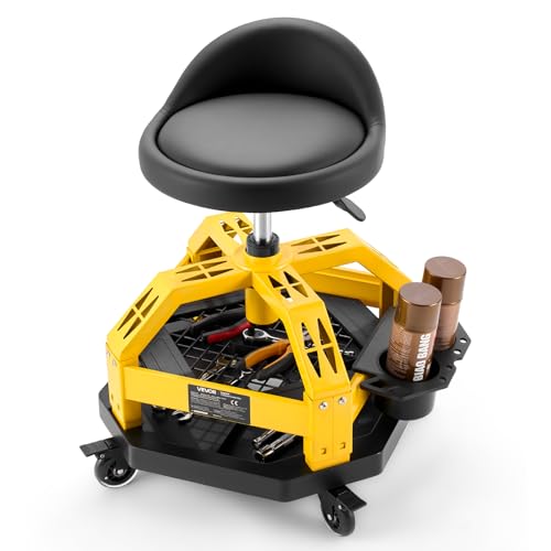 VEVOR Mechanic Stool, 300 lbs Capacity Garage Seat/Work Stool with Wheels, 360掳 Swivel Rolling Workshop Stool with Tool Tray and Screwdriver Rack, Heavy-Duty, for Garage, Shop & Auto Repair, Black