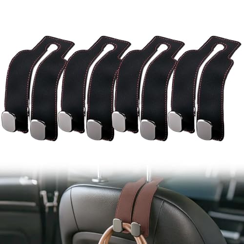 SHBAOCH 4PCS Car Seat Back Hooks, Leather Car Seat Organiser Hooks, Multifunctional Hanger Storage Organizer for Food Bags Umbrellas Handbags (Black)