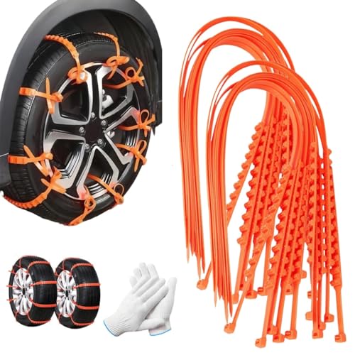 10/20/30/40/50pcs Universal Reusable Anti-Skid Nylon Tire Chains, Anti-Slip Zip Ties Snow Chains, Adjustable Emergency Anti Skid Cars Winter Tire Wheels Chain, for Trucks, Suv, Rain/Snow (50, Orange)