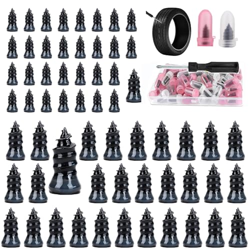 100PCS Tire Repair Kit: Rubber Screw Tire Plugs for Vacuum Puncture 鈥 Self-Service Quick Repair Nails for Car, Motorcycle, Truck & SUV Emergency Roadside Tool Set with Screwdriver (50S+50L)