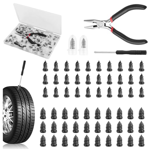 AACGIN 70 Pcs Tire Repair Rubber Screws,Tire Repair Rubber Nail, Tire Repair Nail Fast Tool Self-Service Tire Repair Nail Vacuum Suitable for Car Motorcycle Jeep Tire Puncture Repair