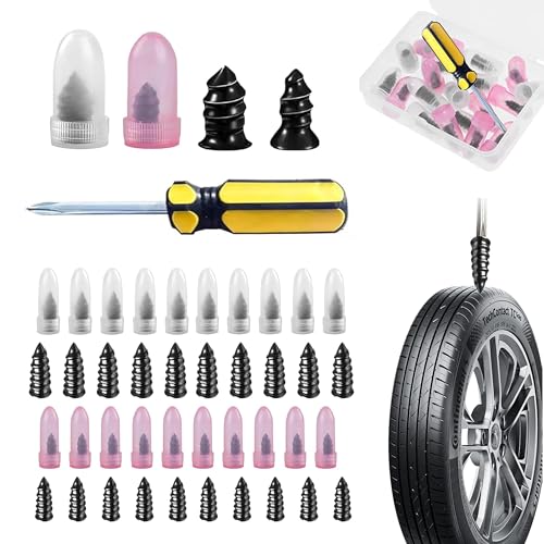 Vacuum Tire Mending Nail, Sufficientlg 60 PCS Tire Repair Rubber Nails Kit with Box and Screwdriver, Screw in Tires Repair Plugs, Self-Service Tires Screw Plug Repairs for Puncture Repairs(60 Pcs)