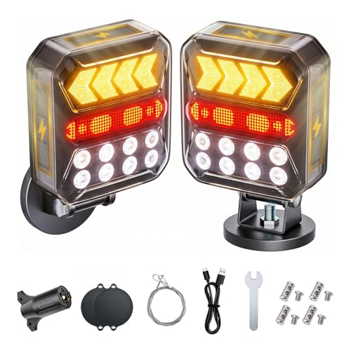 Blumway Magnetic Wireless Trailer Lights, Upgraded 2.4GHz Transmitter with 2000mAh Towing Lights Kit for Trucks, Boat, RV, Vehicle, Caravan,100FT Transmission Range