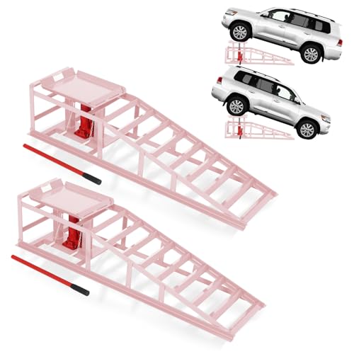 2 Pack Heavy Duty Hydraulic Car Ramps 5t 11,000Lbs, Steel Lift Ramps with Adjustable Height, Low Profile Service Ramps for Trucks, Trailers, SUVs, Garage Vehicle Maintenance & Repairs