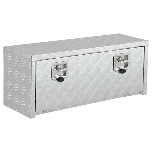 Luocute 34.3 Inch Aluminum Truck Bed Tool Box, Heavy Duty Water Proof Multifunctional Trailer Storage Tool Box with Keys, for Truck RV ATV Trailer Garage