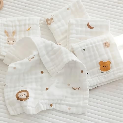 5-Pack Muslin Burp Cloths Baby Boy, Girl - Very Absorbent Baby Burp Cloth Rags, 8-Layers Viscose Derived from Bamboo Cotton Muslin Towel, Super Soft Spit Up Rags, No Shrink Washcloths (The Wild)