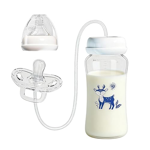 Milk Bottle, 240ml Silicone Hands-Free Wide Neck Adjustable Fast Flow Milk Bottle for Parents Home Bedroom Kitchen Nursery Restaurant Hotel Travel Picnic