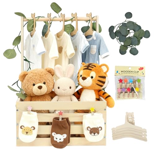 Baby Boy Girl Gift Box Set Newborn Baby Blanket, Newborn Lovey Security Blanket, Baby Wooden Rattle Toy, New Born Clothes Bibs Socks