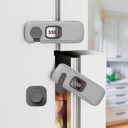 BECOMTO 2 Pack Childproof Refrigerator Lock,Cupboard Locks for Children,Freezer Lock Apply to Max 1"(25mm) Sealing Strip,Cabinet Cupboard Lock for Toddlers,Easy to Install,No Tools Need or Drill,Grey
