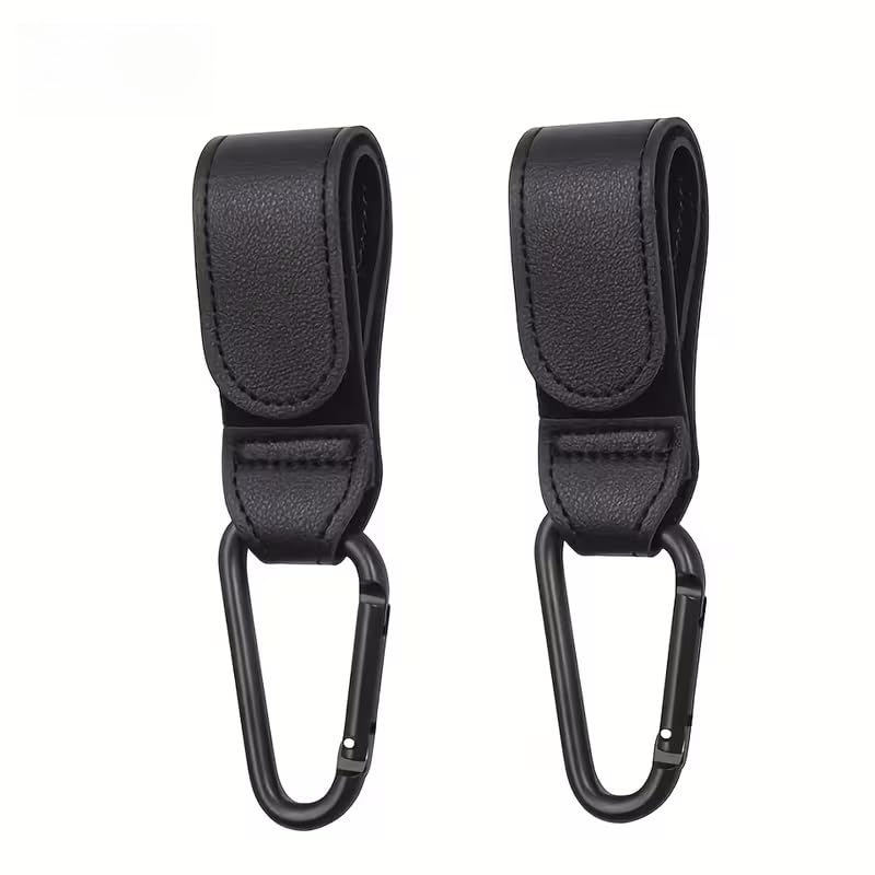 2 Pcs Baby Stroller Hooks, Bag Hooks for Hanging Diaper Bags, Multipurpose Hooks for Grocery Shopping Bags,Premium Vegan Leather Pram Straps