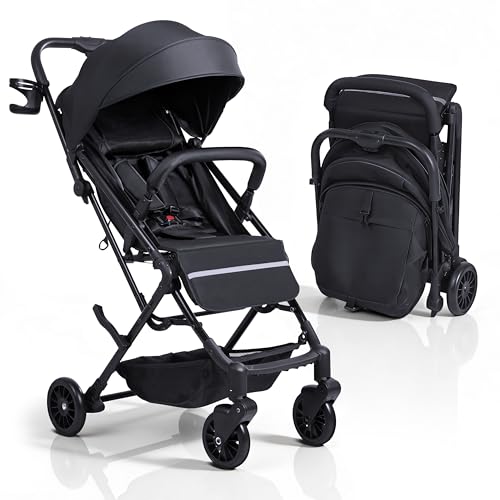 LIVINGbasics Lightweight Baby Stroller, Compact Portable Folding Stroller with Adjustable Backrest&Footrest for Travel, Black