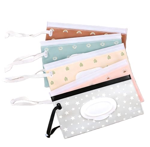 5-Pack Portable Wipes Case, Refillable Travel Wipes Holder with Lid - Boho Style EVA Dispenser for On-The-Go, Multicolor