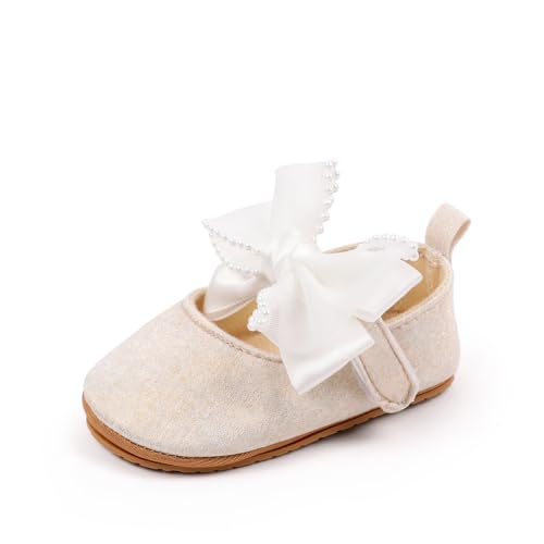 Sonsage Baby Girls Mary Jane Shoes Bowknot Princess Wedding Ballet Flats Infant Anti Slip Soft Sole Newborn First Walking Crib Shoe