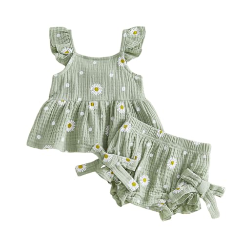 Toddler Girl Summer outfits Clothes daisy Print Tshirt Tank tops + Ruffle Bloomers Shorts sets 2pcs