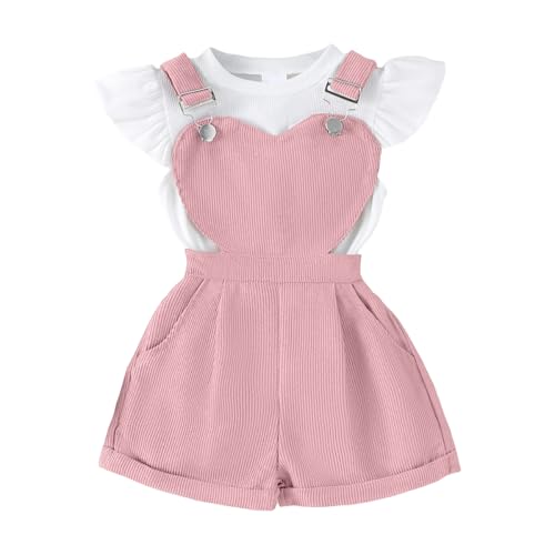 Morerich Toddler Baby Girls Summer Clothes Infant Little Kids Sleeveless Solid Color T-Shirt Flower Print Shorts Outfit Set Pink 9-12 Months