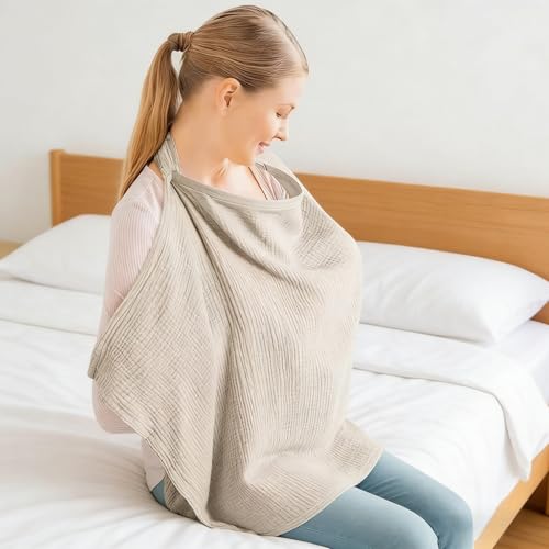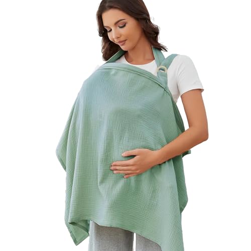 Shengsenfu Muslin Nursing Cover for Breastfeeding, 360掳Full Coverage Nursing Poncho, Adjustable Rayon Soft