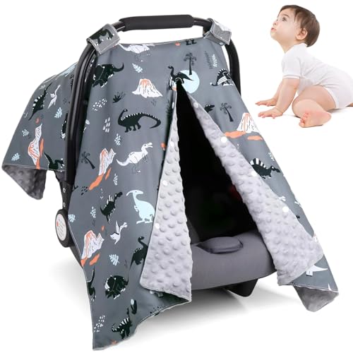 TANOFAR Car Seat Cover Baby, Carseat Covers Baby Boy Girl, Peekaboo Opening Infant Car Seat Cover for Winter, Warm & Cozy, Blue Dinosaur