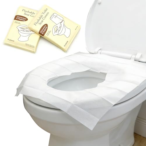 PoliLyn Toilet Seat Covers Disposable | 10 Sheets x 10 Packs锛孉dhesive-Secured, Flushable | for Potty Training | Travel Accessories for Public Restrooms Camping Airplane