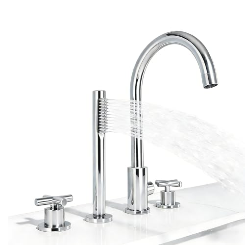 Hoimpro Tub Filler Freestanding Bathtub Faucet Matte Black Floor Mount Tub Faucet Waterfall Free Standing Bathtub Filler High Flow Brass Bath Shower Faucets with Handheld Sprayer
