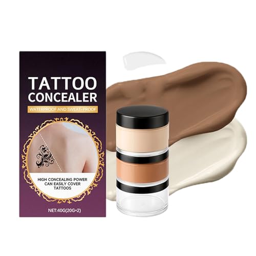 Tattoo Cover Up Makeup, Tattoo Cover up Makeup Waterproof, Waterproof Concealer, Professional Waterproof Skin Concealer Set to Cover Tattoo/Birthmarks/Scar for Men and Women-2 Colors