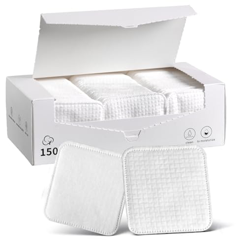 Square Cotton Pads 150 Counts Lager Size 100% Cotton Makeup Remove Pads Not to Shed or Fall Apart Face Cotton Pads Triple-Layer Design for Daily Skin Care,Lint-Free, 2.75''X2.95''