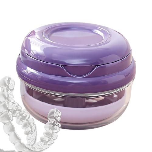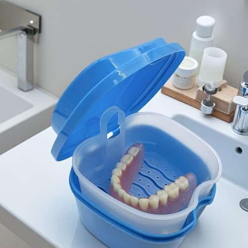 Hoxfly Denture Case, Leak Proof Denture Soak Container, Denture Bath Box with Strainer for Retainer Mouth Guard Denture Night Guard