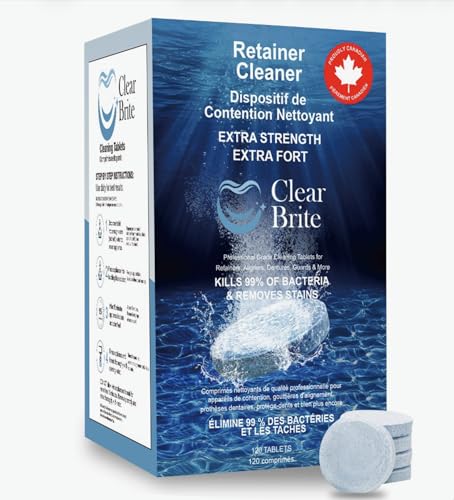 Proudly Canadian ClearBrite Naturals Retainer Cleaner Tablets, 120 Tablets (4 Month Supply), Extra Strength for Retainers, Aligners, Night Guards, Mouth Guards & Dentures