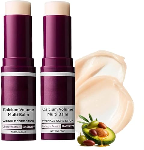 Calcium Multi Balm Stick, Anti Wrinkle Calcium Balm, Anti-Aging, Wrinkles, Hydrating, Almond & Vitamin E for Lip Balm Eye Cream Neck (2PC)