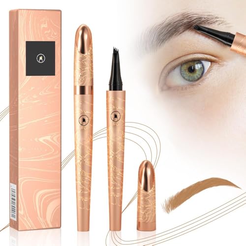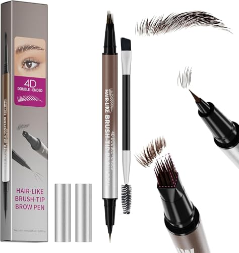 Dual Ended Microblading Eyebrow Pencil 2 in 1 Natural Liquid Eye Brow Pencil for Women with Brow-Fection Angled Brush & Precise Detail Brush-Tip (Brown)