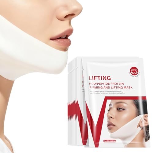 V-Line Lifting Collagen Face Mask, 10 Pack Chin Strap for Double Chin, V-Line Lifting Mask, Jawline & Neck Mask for Skin Firming, V Shape Face Mask, Moisturizing for Face, Skincare IREV