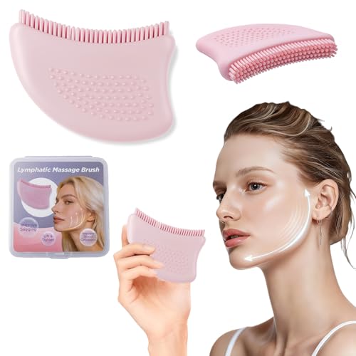 Lymphatic Contour Face Brush, Dry Face Brush for Lymphatic Drainage Massager 鈥 Ultra-Soft Silicone Bristles, Anti-Puffiness Tool to Lift & Sculpt Chin Jawline, Ergonomic Design with Travel Case