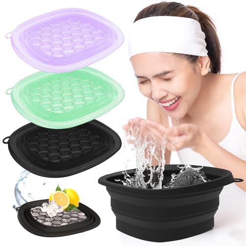 Face Ice Bath Bowl, Large Facial Tub, Collapsible Silicone Cold Face Plunge Tub, Face Ice Bath Tub for Facial Skincare Tools (Black)