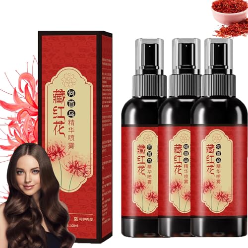 Saffron Hair Blackening Spray,Herbal Essence Hair Spray,Saffron and Polygonum Multiflorum EssenceSpray, Anti-Lost Strengthen HairRoot, Non-frizzy, Prevent GrayHair (2)