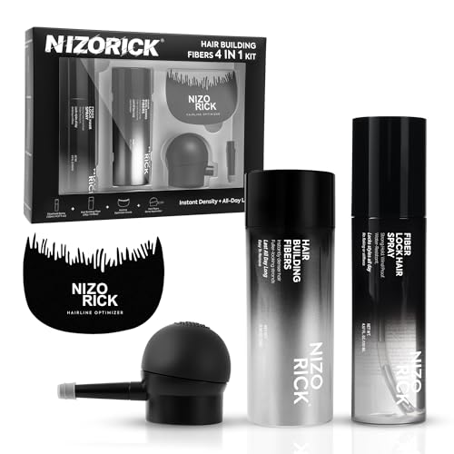 OMWAH Natural Hair Fiber 2-in-1 Kit With Natural & Undetectable Natural Hair Thickening Fibers & Spray Applicator Pump Nozzle, Instant Thicker Hair (Medium Brown)