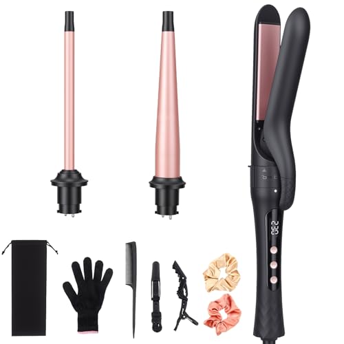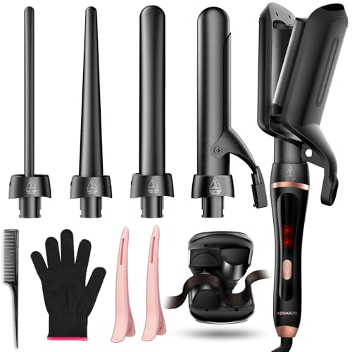 5 in 1 Curling Wand Set, Hair Curler with Waver Curling Iron Wand, Instant Heat Up Curling Iron with Interchangeable Ceramic Barrels (0.35"-1.25") Dual Voltage Hair Curler Birthday Gifts for Women