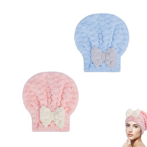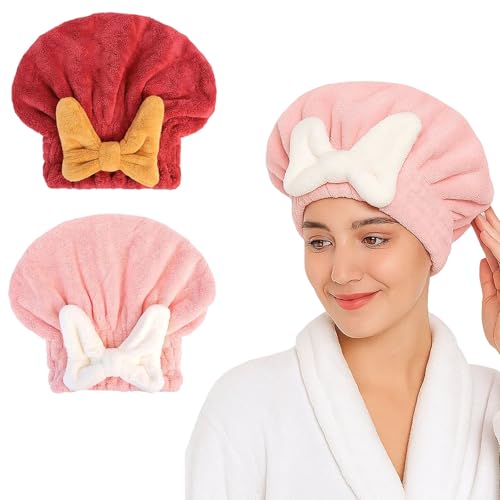 Large Microfiber Hair Drying Caps with Bow Knot Ultra Absorbent Hair Turban Drying Cap Hair Shower Cap Soft Hair Wrap Quick Dry Bath Caps for Curly Thick and Wet Hair 2Pack (new pink+purple)