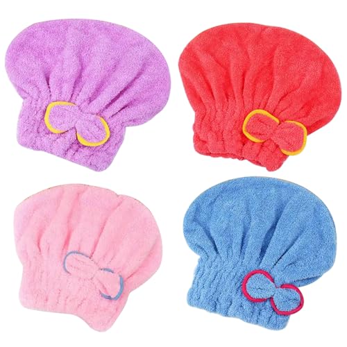 LALOCAPEYO 4 Pcs of Bow Tie Hair Wrap Towel Cute Wet Hair High Water Absorption Towel Quick Drying Towel Thickened Ultra Strong Water Absorption Quick Drying Hat Shower Accessories for Wet Hair (4)