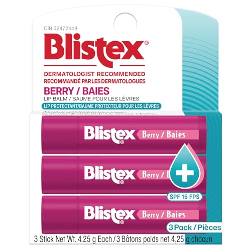Blistex Medicated Berry Balm 3 Count, 0.15oz Ea. - Soothes and Protects - Advanced Medicated Lip Care for Dry, Chapped Lips, Specialized Solutions for Healthy Lips - SPF 15 Sun Protection