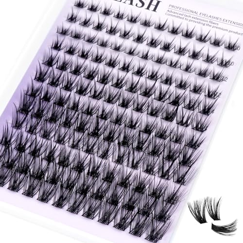KEYYOU Fairy Brown Lash Clusters Kit Lash Extension D Curl 144Pcs Eyelash Extension Kit Wispy Natural Invisible Band Lash Kit(Fairy Brown-D-8-16MIX)