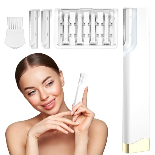 PEDOOD Sonic Dermaplane Razor for Women, Facial Hair Remover with LED Light, 3 Speed Mini Electric Dermaplaning Tool for Sensitive Skin, Peach Fuzz Removal, 9 Safety Blades & 1 Exfoliating Head