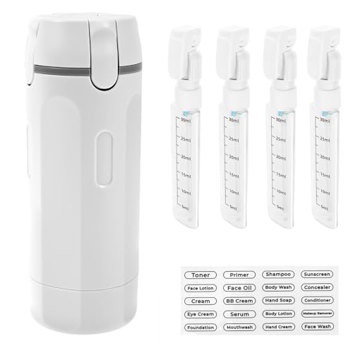UIUSEA 4 in 1 Travel Dispenser, 4 Pack 30ML Travel Bottles for Toiletries, Leak Proof Travel Size Containers, Portable Containers for Shampoo Lotion Conditioner Cream (WHITE+GREEN)