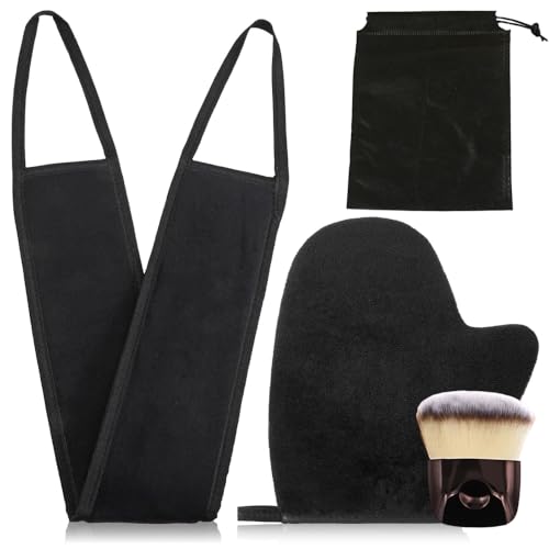 5 Piece Self Tanning Mitt Applicator Set with Self Tan Glove Tanning Back Lotion Applicator Tanning Brush Tan Face Mitt Exfoliating Glove, for Self Sunless Tanning Tan