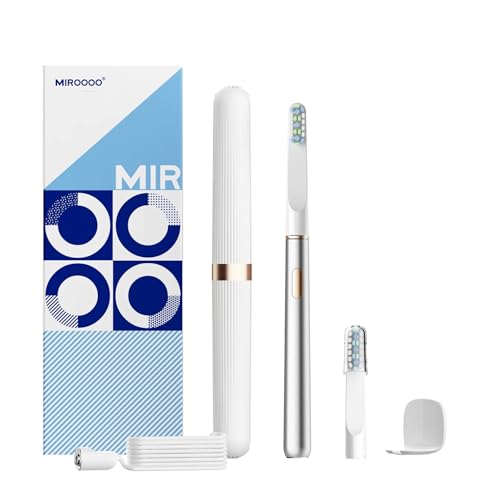 MiroShine Electric Toothbrush with 2 Brush Heads, Travel-Friendly Compact Design, Lightweight Aluminum & Gentle Gum Care, Valentine's Day gifts (Silver)