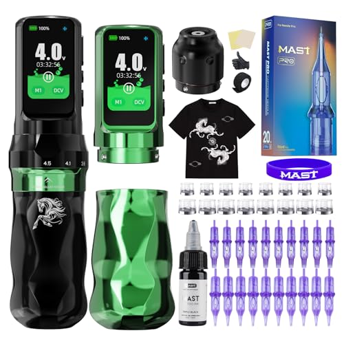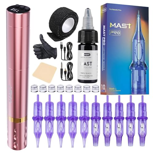Mast Tour Tattoo Pen Kit, Wireless Tattoo Battery Power Supply Tattoo Machine Gun Kit, 20Pcs Cartridge Tattoo Needles Certificated Safe Black Ink