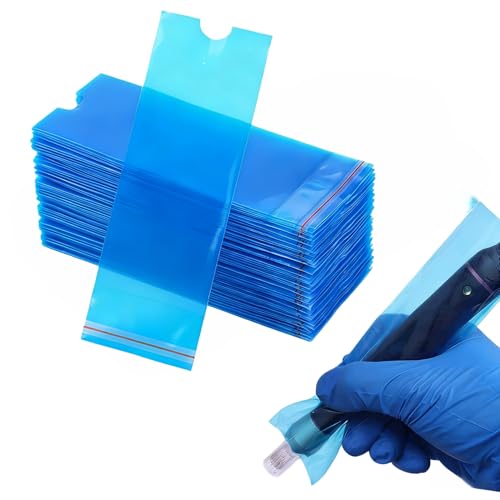 Large Tattoo Machine Covers - Emalla 200Pcs Tattoo Pen Covers Disposable Blue Pen Bags 2.5 x 7.1in Machine Sleeves for Tattoo Supplies