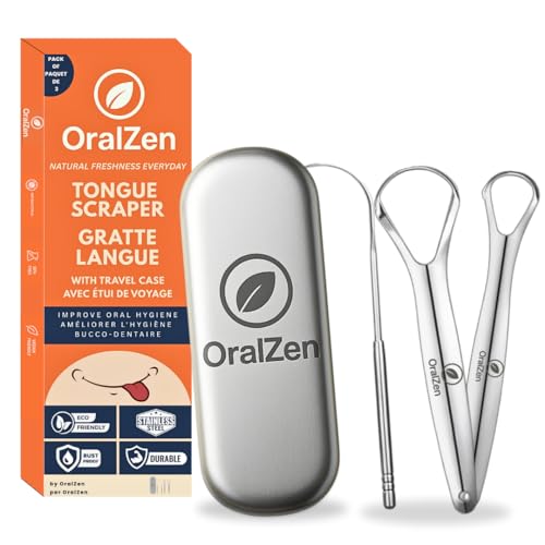 Professional Tongue Scraper for Adults, Reduce Bad Breath at Once, Stainless Steel Cleaner for Oral Hygiene, Pack of 2 Reusable Metal Tongue Scraper with Case (U-Shape)