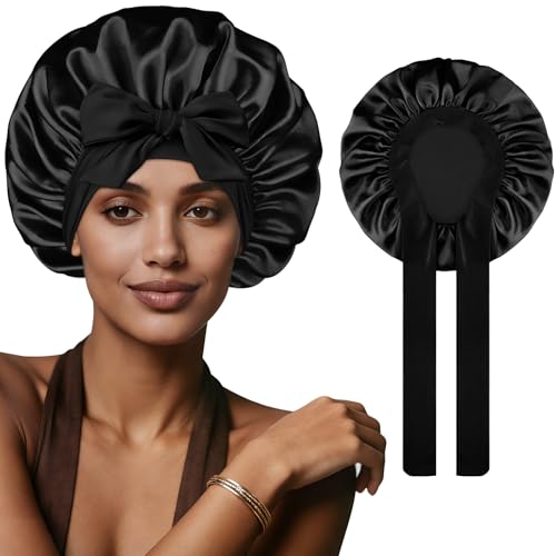 Wig Cap,100% Mulberry Silk Hair Loss Cancer Women Bald Head Elastic Band Black