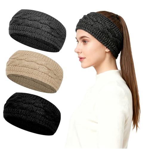 DRESHOW Women Warm Knitted Headband Winter Ear Warmer Crochet Head Wraps Thick Fleece Lining Hair Bands